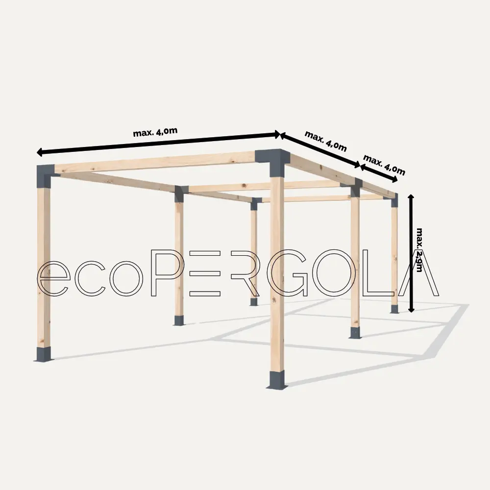 4 x TRES90 12/12 to nasz 3-ramienny łącznik narożny 90̊do naszego systemu ecoPERGOLA