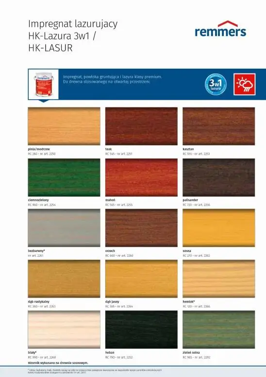 - Należy przestrzegać polskiej normy PN-EN 927 Farby i lakiery – Wyroby lakierowe i systemy powłokowe na drewno zastosowane na zewnątrz.