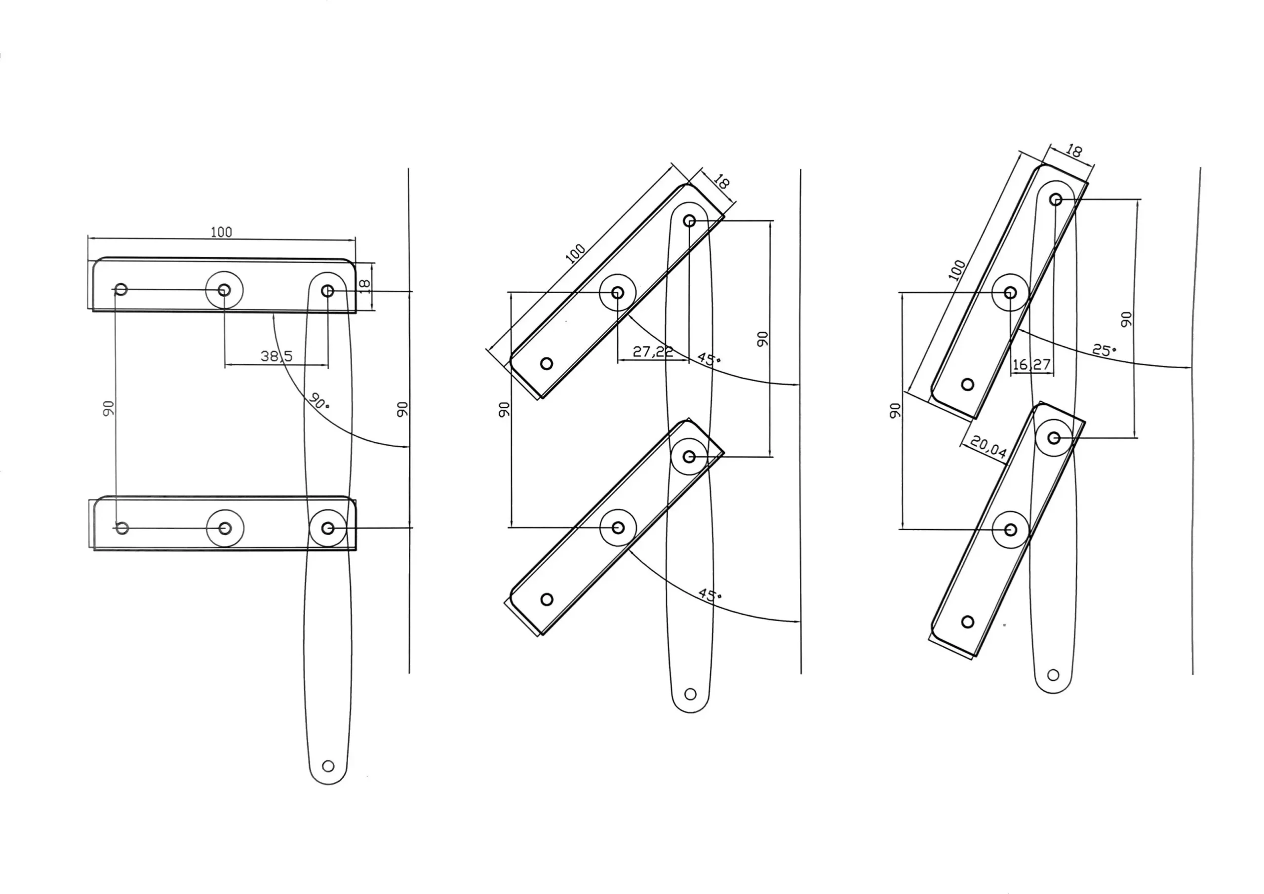 Mocowania „L”: 25/18,3mm dł 98mm / gr 1mm Tuleja 2 elementowa: fi 12 /gr. 5mm + fi18 / 2mm Cięgno 97,5 / gr 2mm